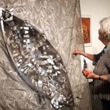 Während er Kaffee macht, geht Mutti von Skulptur zu Skulptur, ist ganz da, lässt sich von den Kunstwerken berühren, wahren Feuerwerken luftiger Metall-Skulpturen. Zart streicht sie über das schwankende Meer rund um ein (Flüchtlings)boot. „Aus Eisen, solch ein hauchzartes Gewebe!” Ob sie das deswegen so erreicht, weil das der Stoff ist, mit dem sich ihr Mann, mein Vater, als Gießer Zeit seines Berufslebens akribisch beschäftigt hatte?